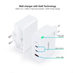 Cargador de Pared GaN 2xUSB-C/PD + USB-A/QC 100W, Blanco