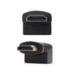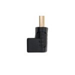 - Adaptador HDMI acodado con conector HDMI tipo A macho en un extremo y HDMI tipo A hembra en el otro