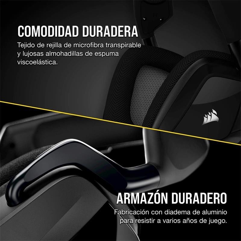 - Control inteligente, posibilidades ilimitadas. El software CORSAIR iCUE permite personalizar los ajustes del ecualizador de sonido, disfrutar de un sonido envolvente e inmersivo 7.1, controlar el ruido local y sincronizar la iluminación RGB con periféricos, refrigeradores, ventiladores y otros productos de CORSAIR compatibles.