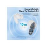 - Audio de alta fidelidad. Los micrófonos dinámicos de 10 mm y el diafragma compuesto de PU+PEEK de alta elasticidad en cada auricular le permiten escuchar cada detalle y brindan una experiencia de sonido envolvente.