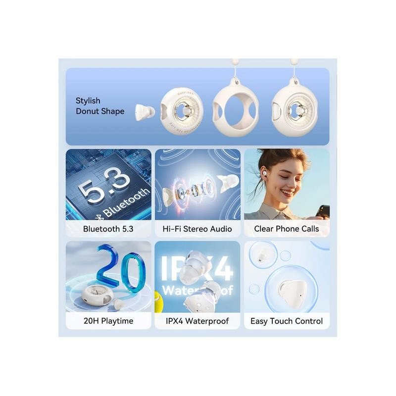 20 horas de autonomía total: 6 horas con los auriculares + 14 horas adicionales con el estuche de carga.