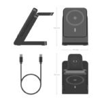 Carga múltiple inteligente. Este cargador fue creado para usuarios exigentes: recarga de manera inalámbrica hasta tres dispositivos a la vez —tu smartphone, tus auriculares con estuche de carga y Apple Watch— manteniendo la máxima eficiencia y velocidad gracias al estándar Qi y su potencia de hasta 15W. Es compatible con dispositivos magnéticos y móviles Qi2, optimizando el anclaje y la seguridad durante la carga.