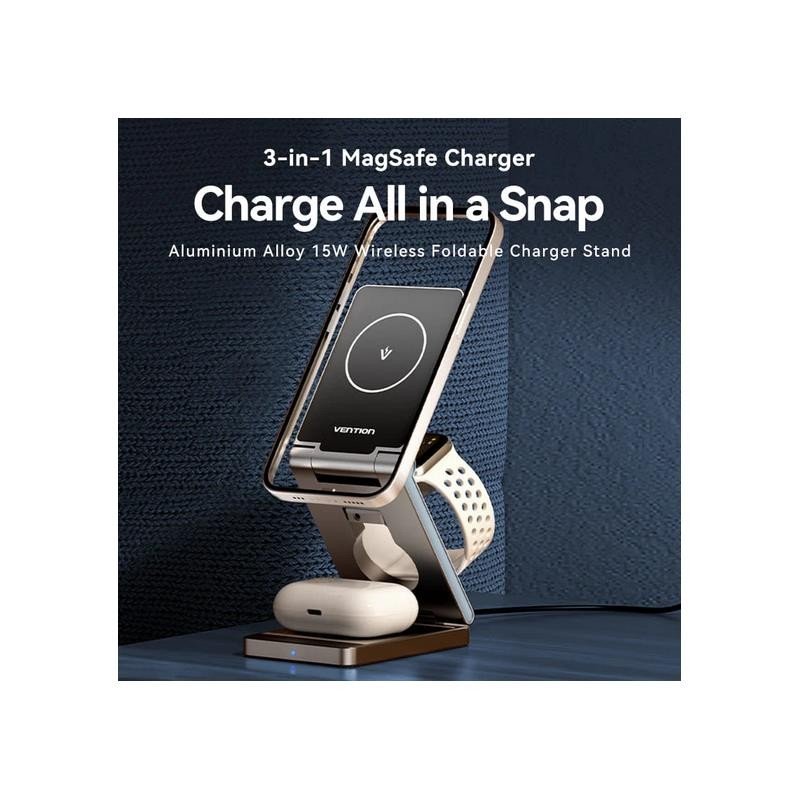 Carga simultánea: Permite cargar tres dispositivos al mismo tiempo: iPhone, Apple Watch y AirPods.