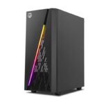 Semitorre con diseño gaming Nox Hummer Frost con tira frontal LED ARGB Rainbow, ventana lateral de cristal templado, capacidad hasta 6 ventiladores de 120 mm, principales puertos a mano y compatible con gráficas de gran tamaño.