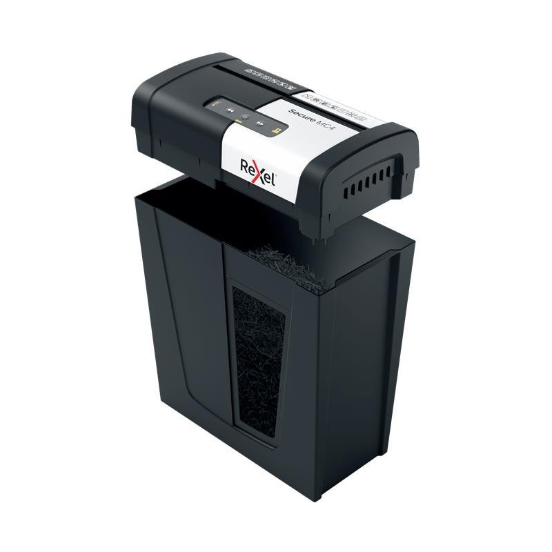 La gama de destructoras de papel Secure de Rexel es ideal para destruir sus documentos personales e información confidencial en casa. La máquina destructora Secure MC4 destruye hasta 4 hojas de papel A4 (80 grs) de una sola vez a través de la ranura de alimentación manual en partículas de nivel de seguridad P-5 (2×15 mm).