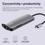 • Añade puertos HDMI, de red, lector de tarjetas, USB y USB-C adicionales al portátil o la tableta con un solo puerto USB-C