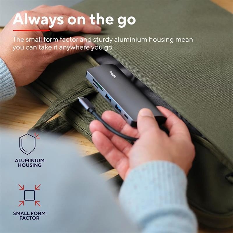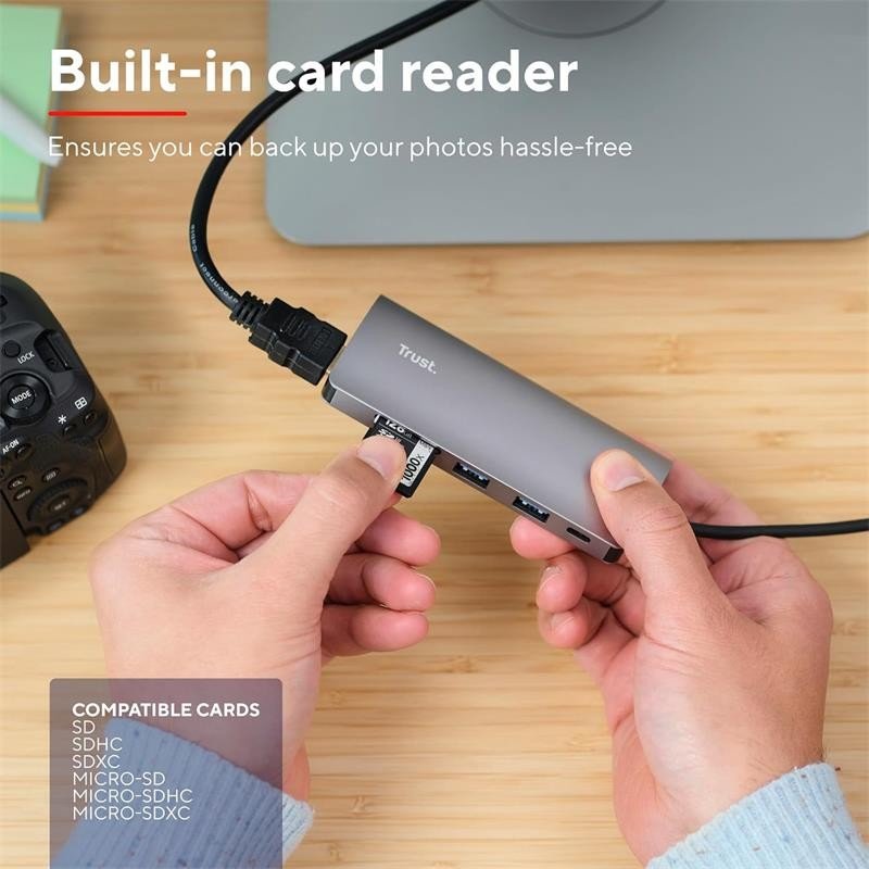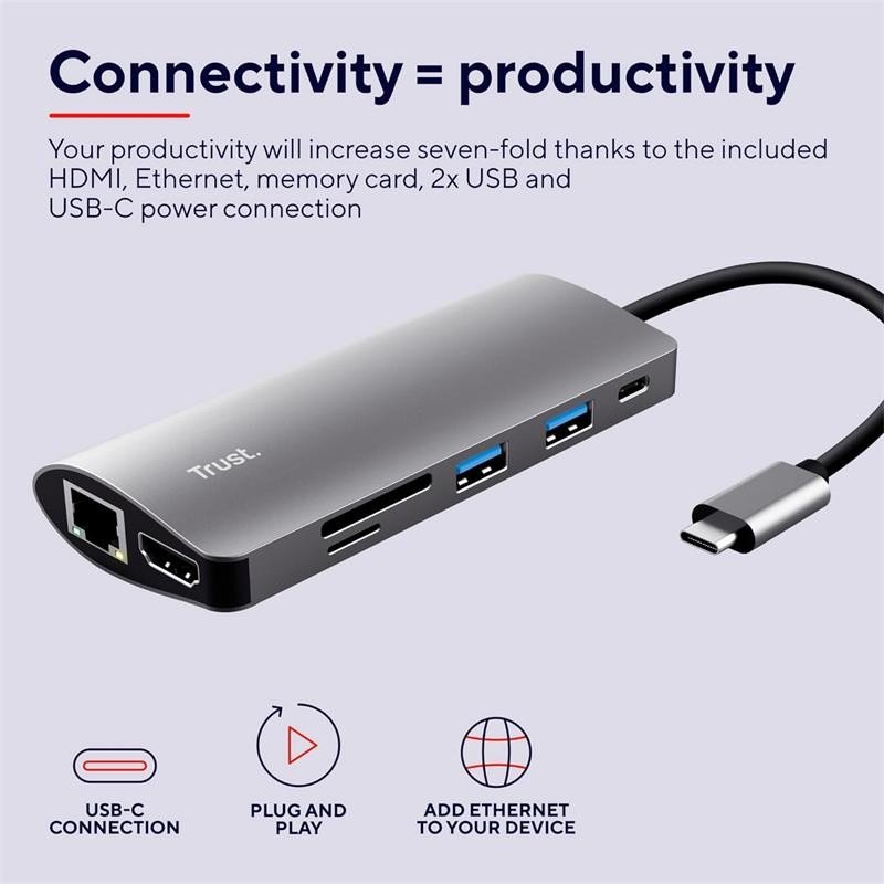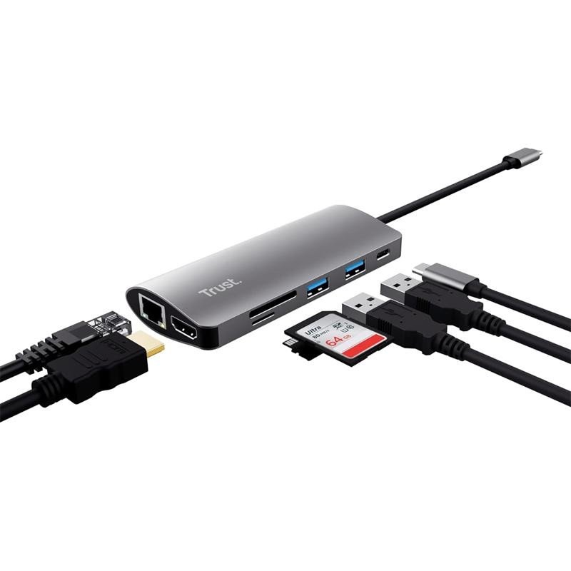 Portada » Tienda » HUB TRUST DALYX USB-C 7 EN 1 HDMI USB-C USB MICRO SD RJ45 SILVER