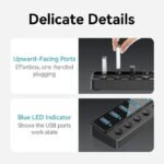 Múltiples puertos: Equipado con 4 puertos USB para conectar varios dispositivos simultáneamente, facilitando la expansión de tu sistema.