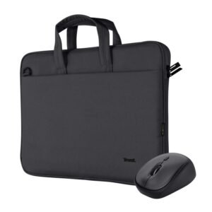 Maletín para portátiles fino y respetuoso con el medio ambiente, hecho de materiales PET reciclados; admite portátiles de hasta 16 pulgadas