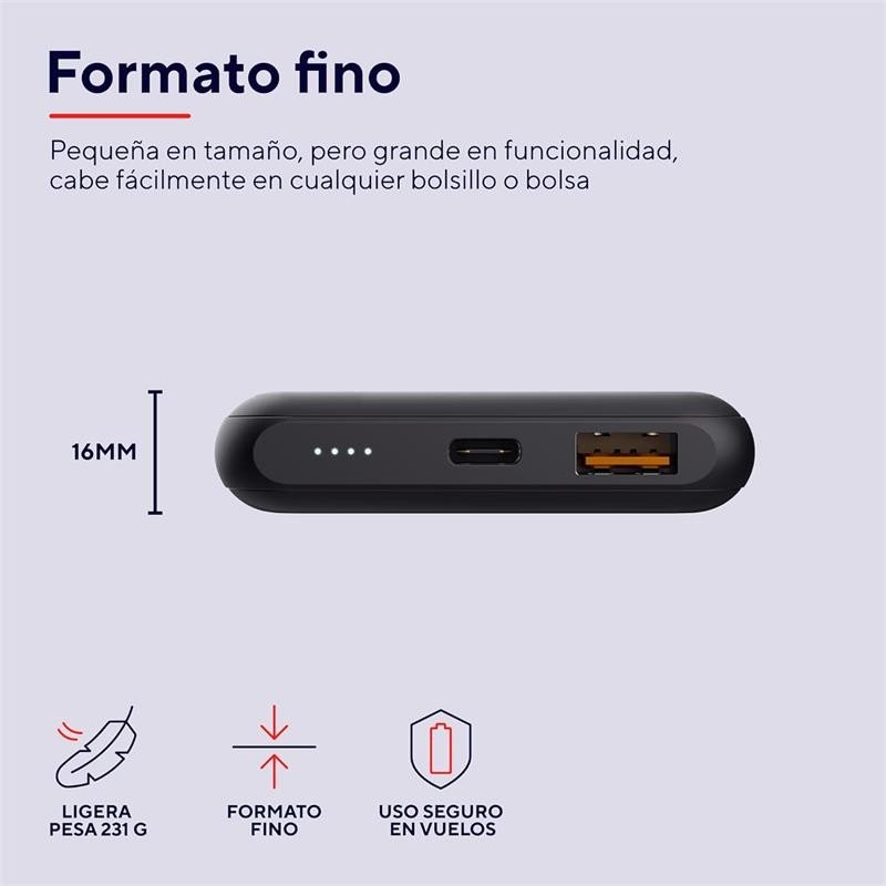Amplía la vida útil de la batería del teléfono, y también la del planeta. Construida en un 50 % con plásticos reciclados, esta batería externa ha sido diseñada para ser lo más respetuosa posible con el planeta.