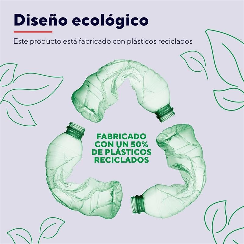 Amplía la vida útil de la batería del teléfono, y también la del planeta. Construida en un 50 % con plásticos reciclados, esta batería externa ha sido diseñada para ser lo más respetuosa posible con el planeta.