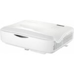 El ViewSonic LS832WU es un proyector láser de ultra corta distancia diseñado para aplicaciones comerciales y educativas. Ofrece una resolución nativa WUXGA (1920×1200), 5,000 lúmenes ANSI y un contraste dinámico de 3,000,000:1, lo que asegura imágenes nítidas y brillantes incluso en condiciones de alta iluminación ambiental. Su relación de proyección de 0.25 permite generar pantallas de hasta 100″ desde solo 28 cm de distancia, expandiéndose hasta 170″, con un menor costo por pulgada comparado con otras pantallas comerciales.