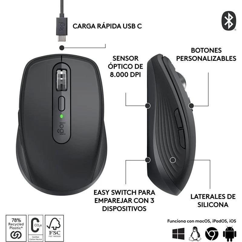 RATON LOGITECH MX ANYWHERE 3S WIRELESS BT 8000DPI 6 BOTONES BLACK