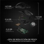 - Sin rodeos: Nuestro ratón PRO más ligero hasta la fecha, PRO X SUPERLIGHT, supone un avance de ingeniería con un peso inferior a 63 gramos (casi un 25% más ligero que nuestro ratón inalámbrico PRO estándar). Este logro se debe a una meticulosa labor para producir una máxima reducción de peso sin comprometer el rendimiento.