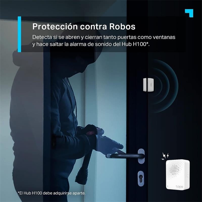 • Protección contra robos. Detecta si se abren y cierran tanto puertas como ventanas y hace saltar la alarma de sonido.