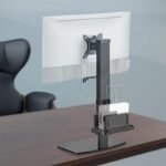Soporte de mesa Eco Aisens giratorio e inclinable para monitor/TV y mini PC de 17?-32? con estilo sobremesa, no se necesita anclar el soporte en el tablero de la mesa. Fabricado con acero de alta resistencia y pintado con pintura electrostática para un acabado perfecto. Destacamos su fácil instalación y ajuste, muy cómodo para el uso diario.