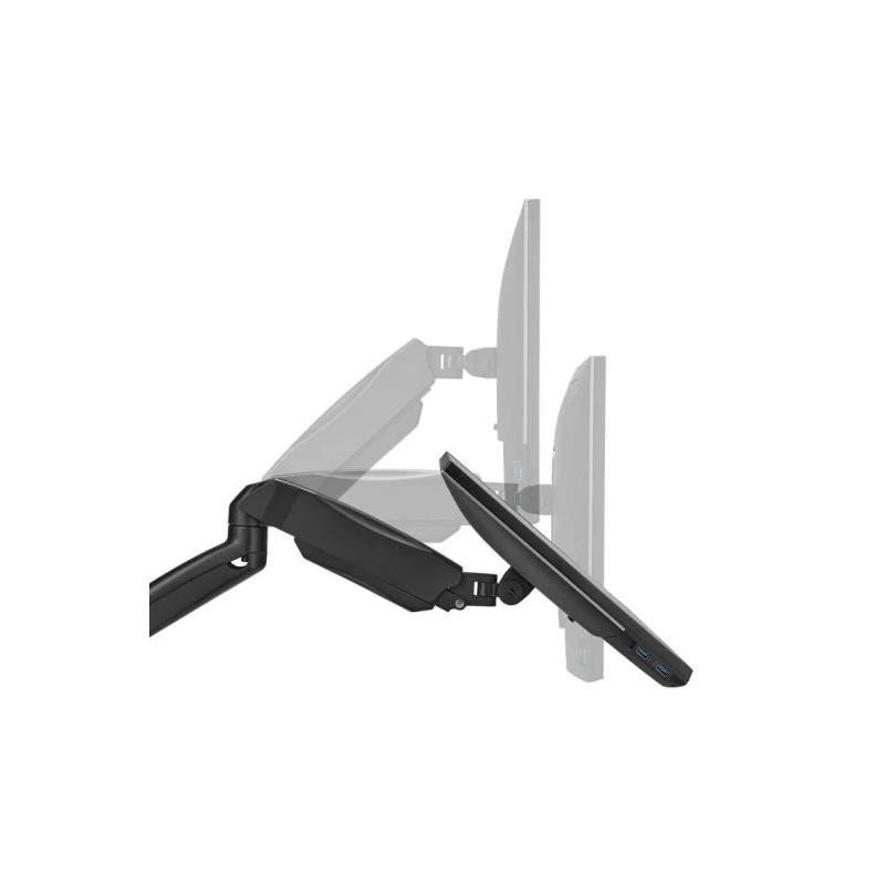 Soporte de pared profesional contrapeso giratorio e inclinable para monitor/TV (3 pivotes, 2 brazos) de 17?-32?. Fabricado con aluminio de alta resistencia y pintado con pintura electrostática para un acabado perfecto. VESA Máximo: 100x100mm (Compatible con VESA de 75×75, 100x100mm).  Carga Máxima por brazo: 9kg.  Rango de peso soportado: 2-9kgs (El peso del monitor tiene que estar dentro de este rango).  Angulo de Inclinación: -45º / +90º (depende de la instalación y del espacio disponible).