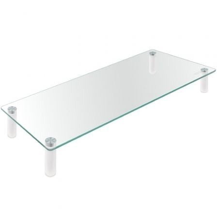 Especificacionesnn Soporte multiusos de gran calidad y robustez para monitores, portátiles, impresoras, máquinas de oficinan Diseño ergonómico: eleva la pantalla a la altura más cómoda para una experiencia visual óptima y reducir la fatiga ocular y del cuellon Ideal para escritorios y espacios de trabajo reducidos, maximice su área de trabajon Incorpora almohadillas de silicona antideslizantes para dar mayor estabilidad y proteger la superficie de trabajo de arañazosn Peso máximo soportado 20 kgn Altura: 80 mmn Grosor del material: 5 mmn Medidas del producto: 560x210x80 mmn Material: Vidro templado, aluminio, almohadillas de siliconan Color: Transparenten Peso neto: 1,51 kg. Peso bruto: 1,80 kgn Medidas del embalaje: 621x220x37 mm