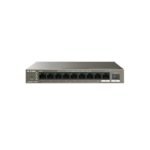 - 9 puertos Ethernet 10/100/1000 Base-T (8 puertos PoE) y 1 puerto SFP 100/1000 Base-X.