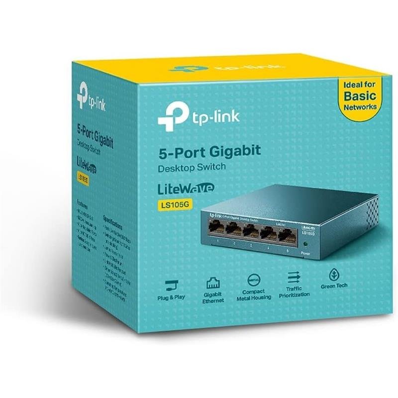 - Puertos Gigabit para Velocidades más Rápidas. Aumenta la velocidad de tu red con el conmutador de escritorio Gigabit de 5 puertos LS105G. Los 5 puertos de 10 / 100 / 1000Mbps no bloqueantes permiten la transferencia instantánea de archivos de gran tamaño, con gran ancho de banda, sin interferencias.