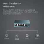 El Switch de escritorio TP-Link de 5 puertos 10/100 / 1000Mbps te proporciona una manera fácil de hacer la transición a Gigabit Ethernet. Aumenta la velocidad de tu servidor de red y conexiones backbone, o haz que Gigabit para el escritorio sea una realidad. El diseño Plug and Play, sin necesidad de configuración, hace que el producto sea fácil de usar.