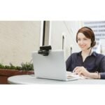 Una cámara webcam empresarial Full HD 1080p con equilibrio de iluminación automático, tapa de privacidad integrada.