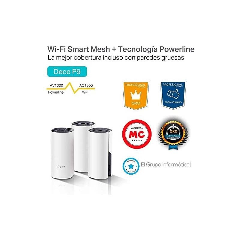 El Deco P9 de TP-Link es una solución híbrida que consiste en 2 routers para un potente Wi-Fi Mesh de doble banda AC1200 Mbps (AC867 N300) con un PLC AV1000 Mbps. Obtendrá una red híbrida única que aumentará eficientemente el ancho de banda para una cobertura de 185 m² por cada caja y soporte para más de 100 dispositivos. La malla eliminará las áreas de baja señal con una sola red WiFi que cubre cada rincón con itinerancia en tiempo real, enrutamiento adaptativo y protección automática. No más búsqueda de una conexión estable ya sea en el sótano, el garaje o el jardín. Además, la configuración y la gestión de tu Wi-Fi es sencilla con Deco, gracias sobre todo a su intuitiva aplicación.n