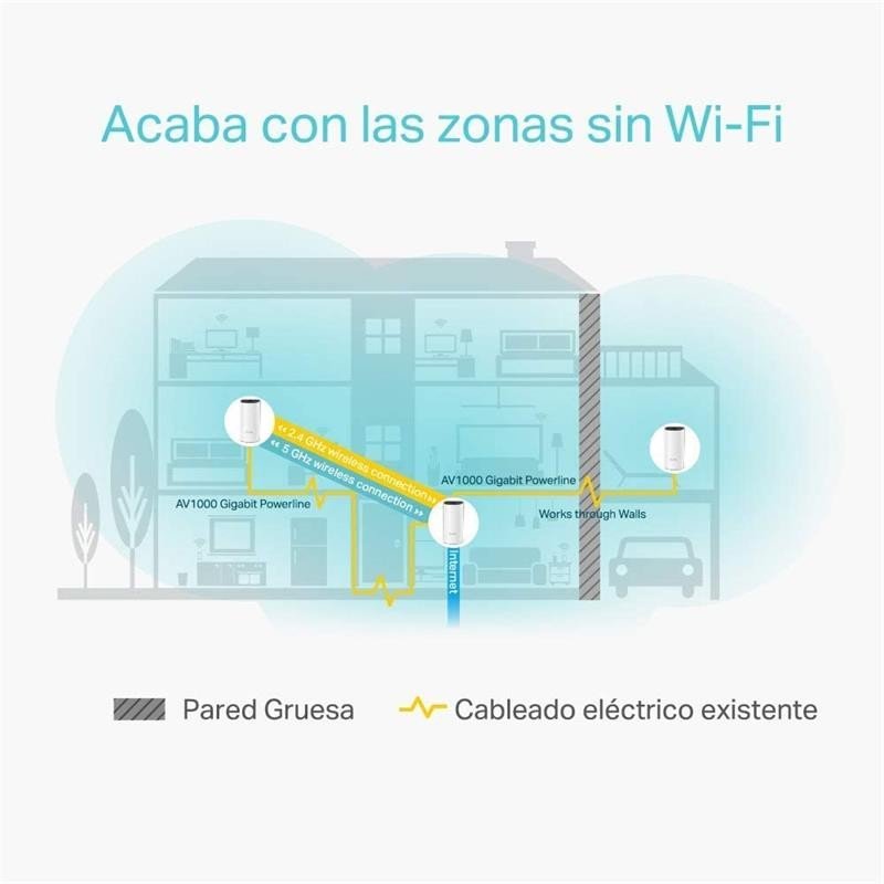 Este sistema híbrido para toda la casa ofrece una cobertura extendida de hasta 370 m2 gracias a la combinación de WiFi de doble banda y PLC. Elimina las zonas de señal débil con el WiFi de toda la casa y no vuelvas a buscar una conexión estable.